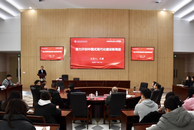 12月4日下午,学校举行党委理论学习中心组(扩大)学习会,专题学习贯彻党的二十届四中全会精神。会议邀请我校马克思主义学院特聘教授、同济大学马克思主义学院副院长、博士生导师吕健教授作题为《学习贯彻党的二十届四中全会精神,奋力开创中国式现代化建设新局面》的辅导报告。校领导、校党委理论学习中心组成员、全体中层干部、各二级学院专业主任、辅导员、思政教师、基层党支部书记,党委宣传部、组织部、教师工作部、学工部等职能部门工作人员参加学习。会议由副校长孙遥主持。