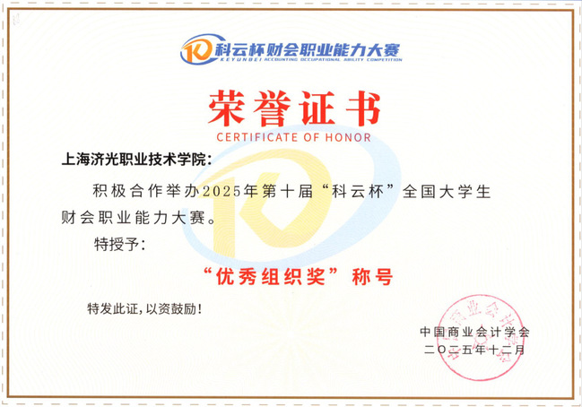 2025年12月20日-21日,第十届“科云杯”全国大学生财会职业能力大赛总决赛在云端举办,我校经济管理学院大数据与会计专业学生凭借过硬的数智化财会实操技能、默契的团队协作能力,荣获全国总决赛高职组二等奖,学校被授予“优秀组织奖”称号。