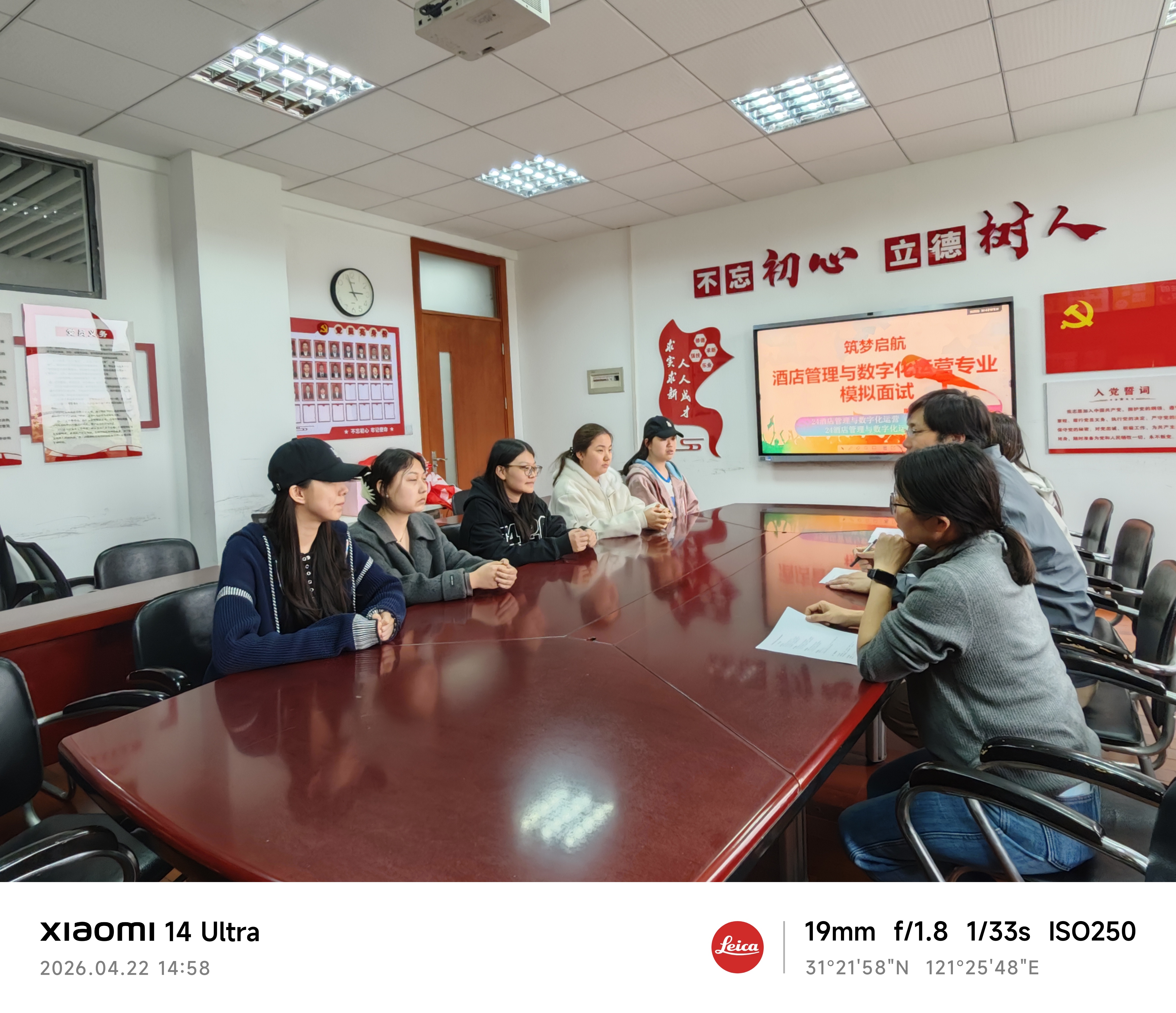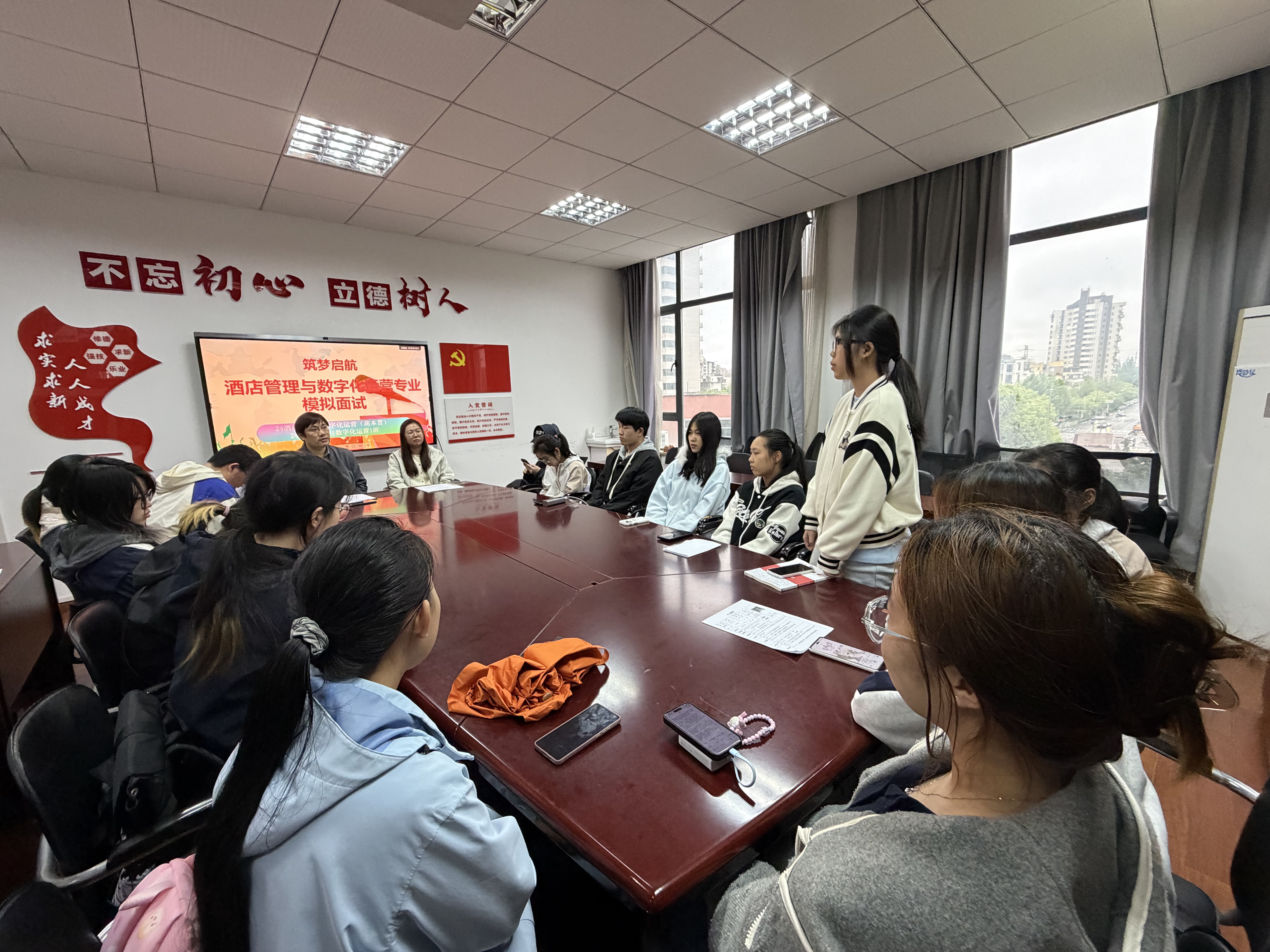 酒店管理与数字化运营专业举办“筑梦启航”活动,专业主任林俊主持,专业老师和辅导员共同担任面试官。老师们针对每位同学的简历、自我介绍、求职意向及优缺点进行细致辅导,帮助完善应聘材料、明确实习目标、突出自身优势。