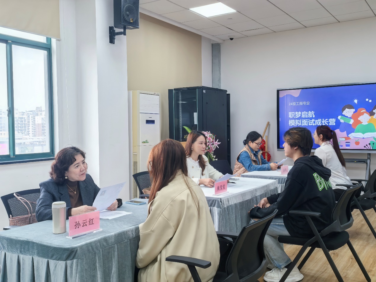 电子商务专业举办“从简历到offer,岗位面试全攻略”活动,全真模拟企业面试流程。专业主任盛朱勇与企业专业主任浦雯婷共同坐镇,融合教学与招聘双重经验,从表达能力、应变能力、岗位匹配度等维度进行精准指导,同学们在沉浸式求职现场中直面挑战、收获满满。